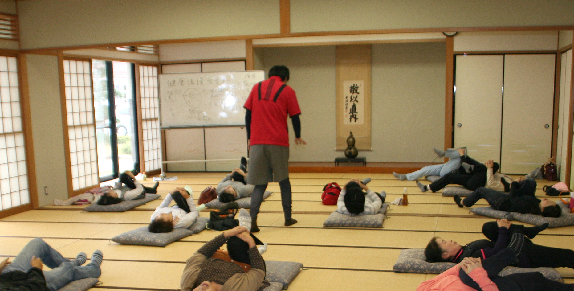 をモットーにした、体を内側から変えていく健康法です。 他の健康法と違い、寝ながらリラックスしてできるので膝や心臓に負担がかからず、普段使わない体のパーツを動かす事で、疲れにくい体にステップアップしていきます!